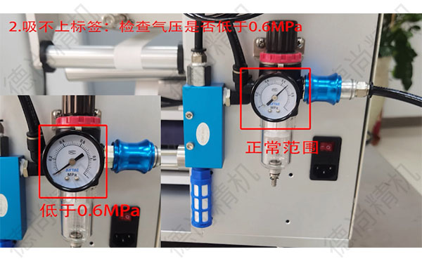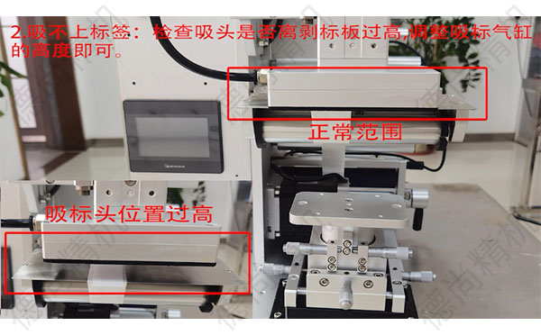 3.檢查吸頭是否離剝標(biāo)板過高,調(diào)整吸標(biāo)氣缸的高度即可。