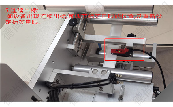 如設(shè)備出現(xiàn)連續(xù)出標(biāo),可調(diào)節(jié)標(biāo)簽電眼的位置,及重新設(shè)定標(biāo)簽電眼。